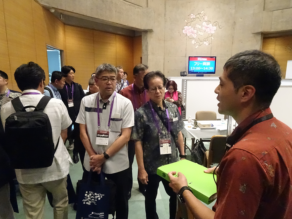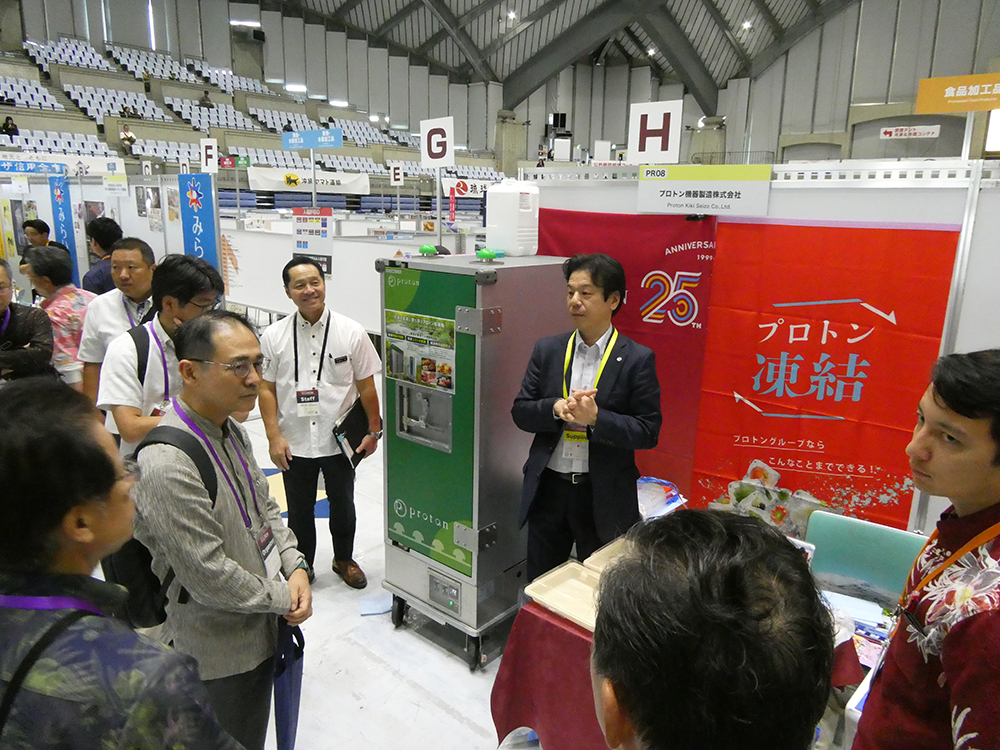 ◯ 大会運営事務局である(公財)沖縄県産業振興公社様のご協力の下、第1商談会場である沖縄コンベンションセンター展示棟にて概要説明を頂いた後、第2商談会場および各PRブースの視察を行った。